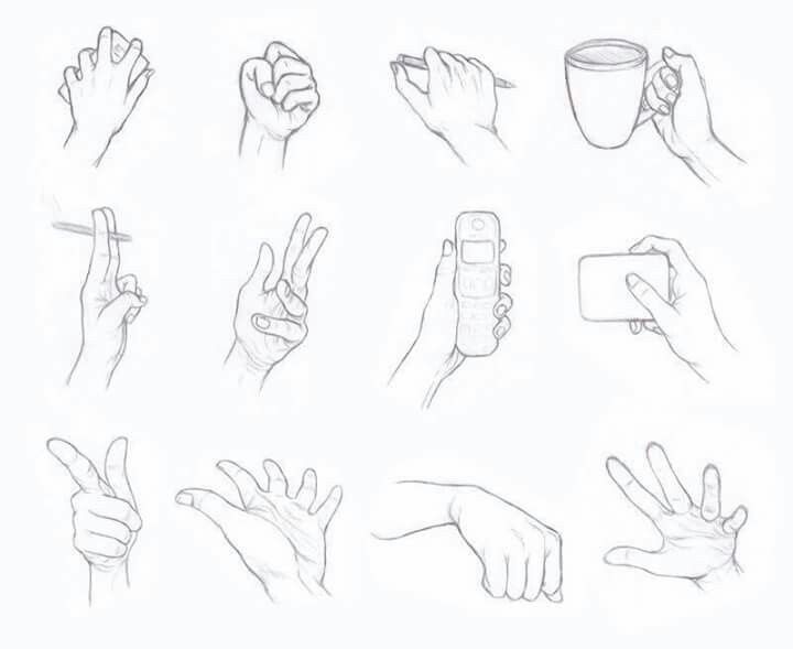 Вместо того, чтобы рисовать все отдельные пальцы, вы можете просто нарисовать руку в форме «руки», которая даст вам хорошее представление о руке, но при этом будет быстро и легко рисовать и пересматривать по мере необходимости, чтобы попробовать разные позы.
