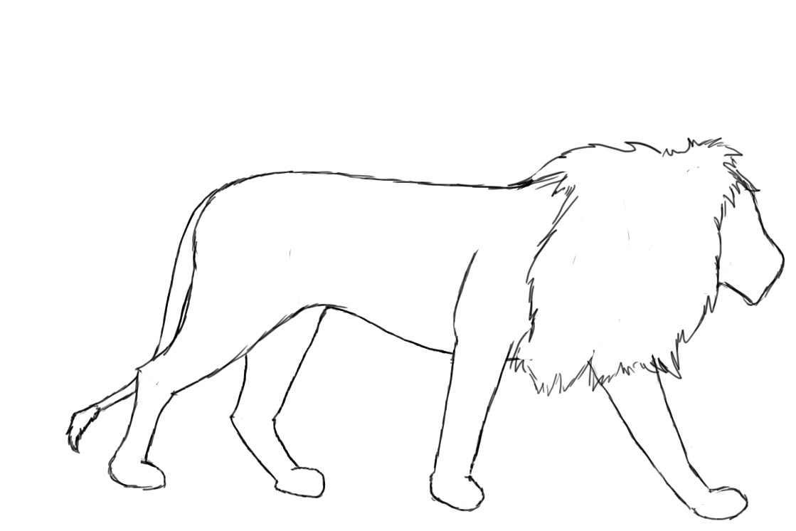 Если вы хотите превратить это самка Льва в самца Льва вы должны нарисовать объемнее тела и гривы (посмотрите шаги 1 и 2). Самцы также крупнее и тяжелее чем самки.