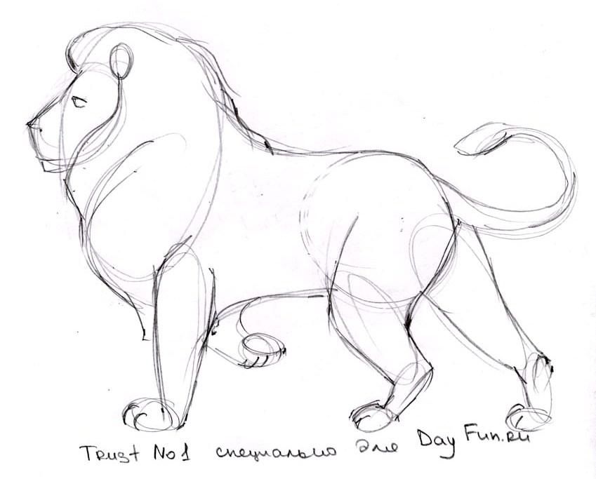 Как нарисовать льва в полный рост карандашом поэтапно
