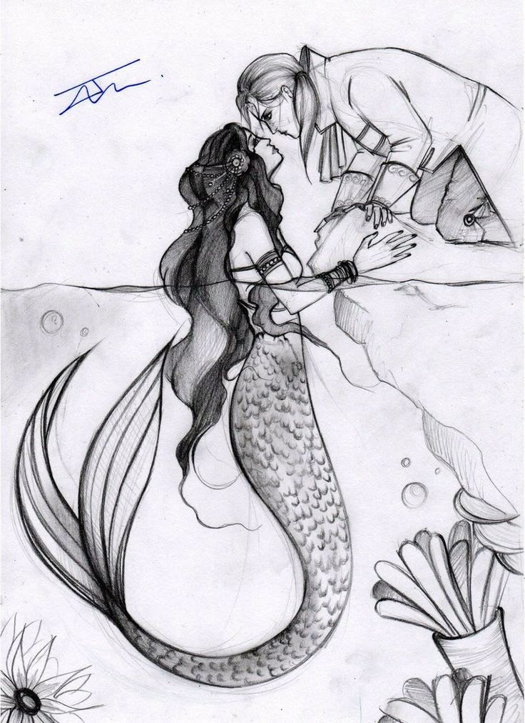 Русалка рисунок карандашом мужчину