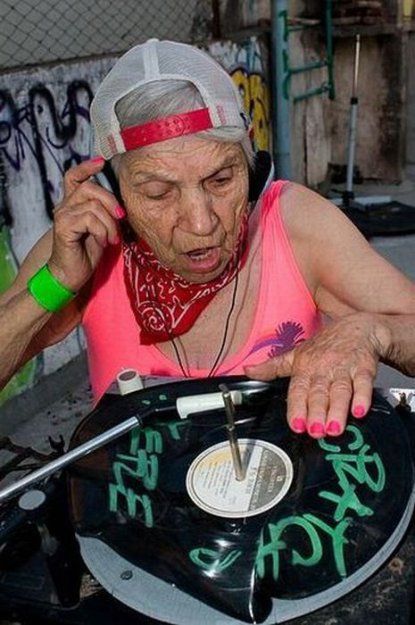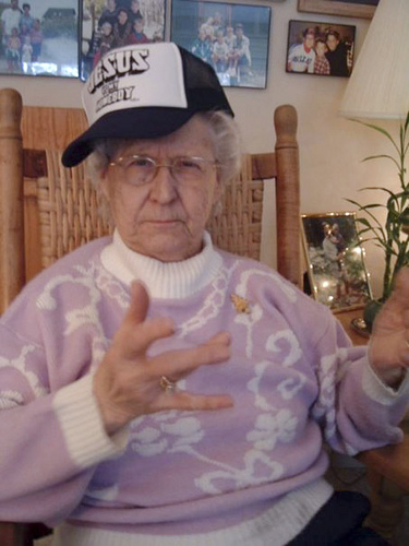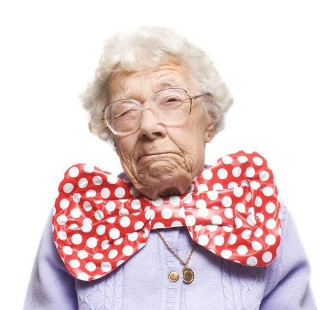 На этом снимке изображена злая бабушка, которая пытается что-то сказать.
