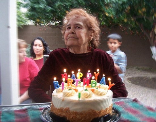 На этом снимке показано, как двое внуков празднуют день рождения своей бабушки.