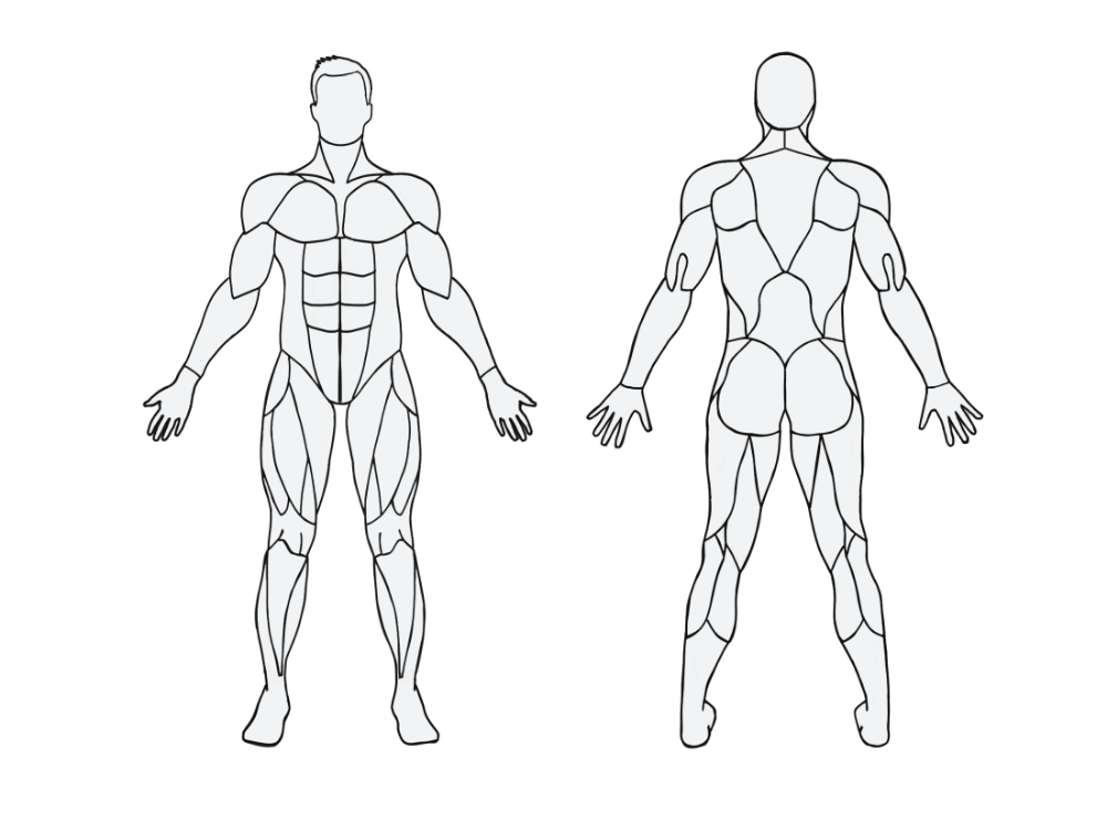 MΓ€nnliches und weibliches Bodychart, Vorder- und RΓΌckansicht.