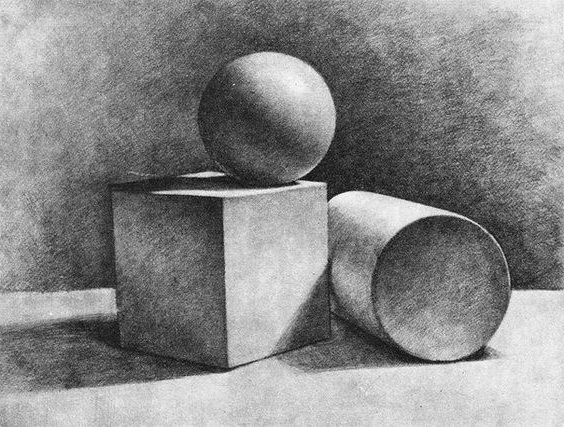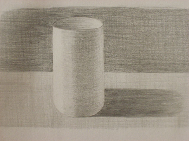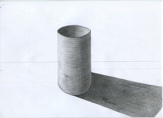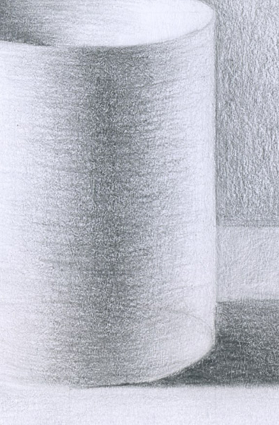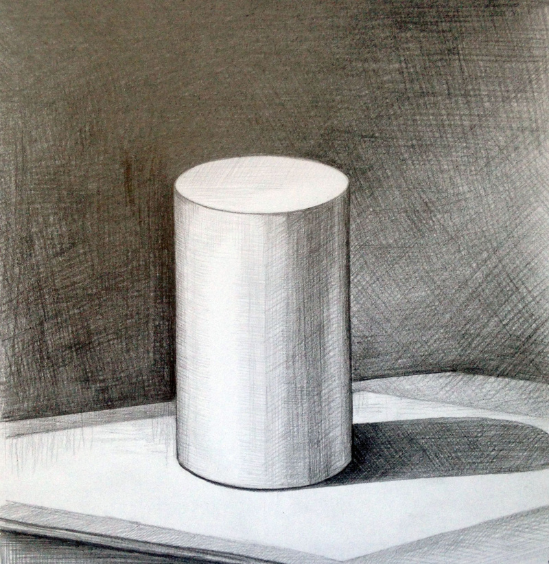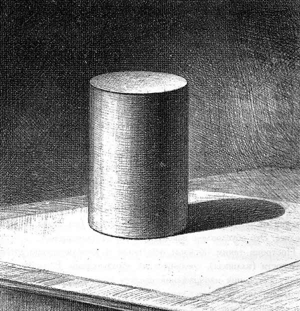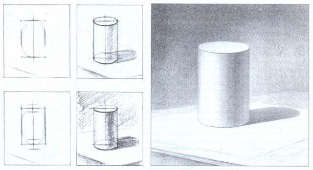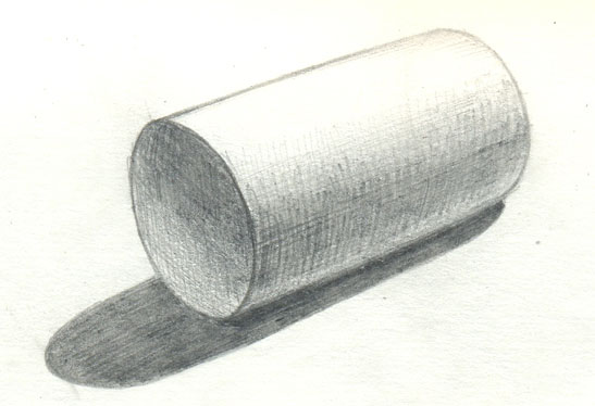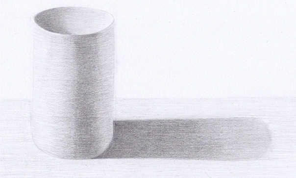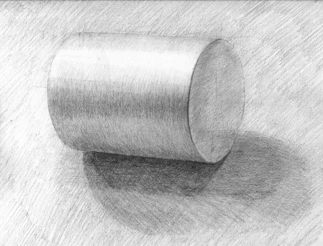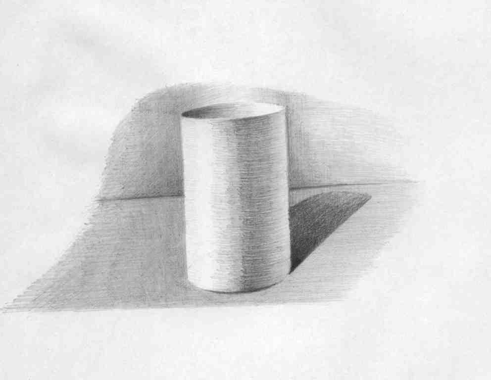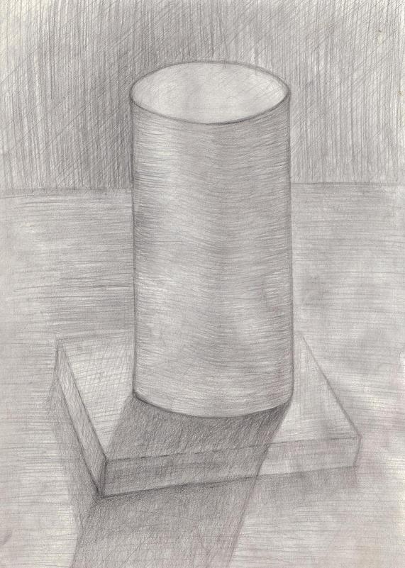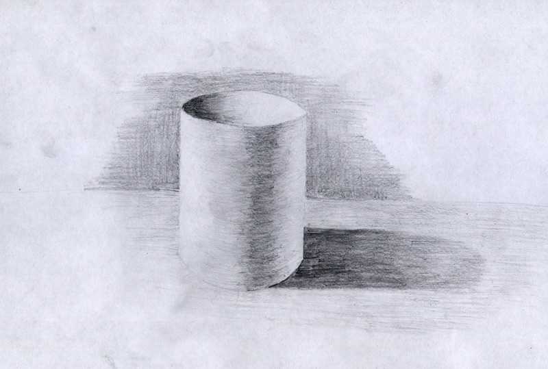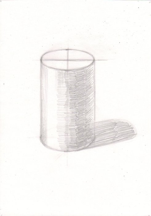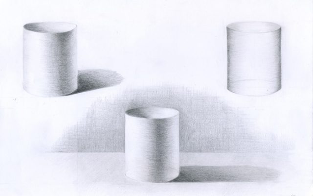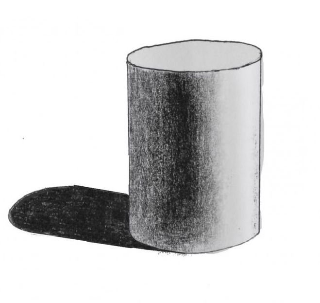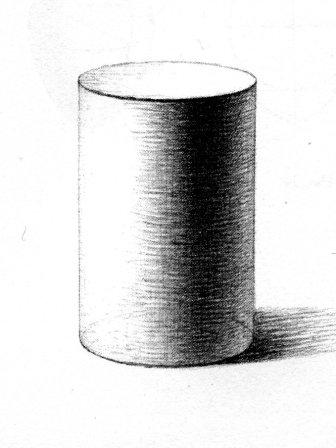 Обязательно разберитесь в градациях, так как вместо передачи объемной формы нарисованное изображение может выглядеть словно помятым или сплющенным. Чтобы этого не произошло, будьте предельно внимательны в моделировке поверхности построенного на бумаге цилиндра.