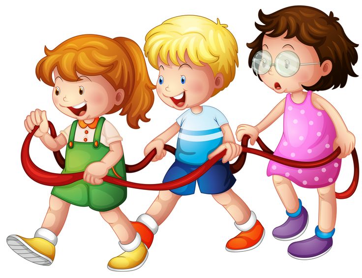Картинка, где группы детей перетягивают канат на свежем воздухе. Рисунок спортивного мероприятия.