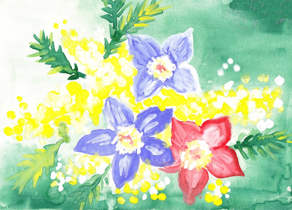 Детский рисунок акварелью и пастелью. Букет цветов в вазе. Стоковая иллюстрация № 7663381, иллюстратор Анастасия Глазнева / Фотобанк Лори