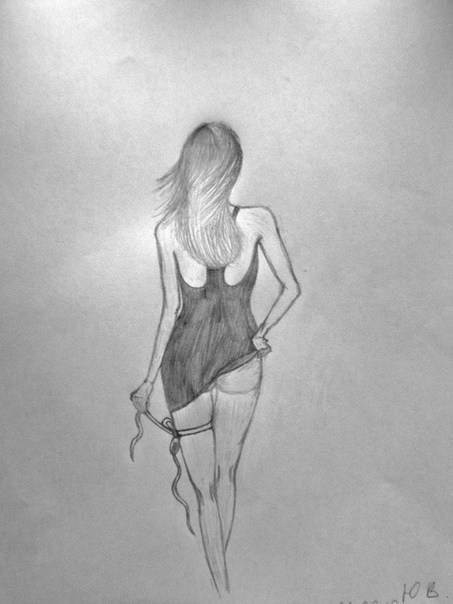 Как нарисовать девушку, стоящую спиной, карандашом поэтапно?
