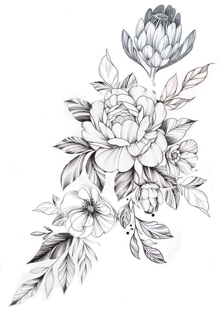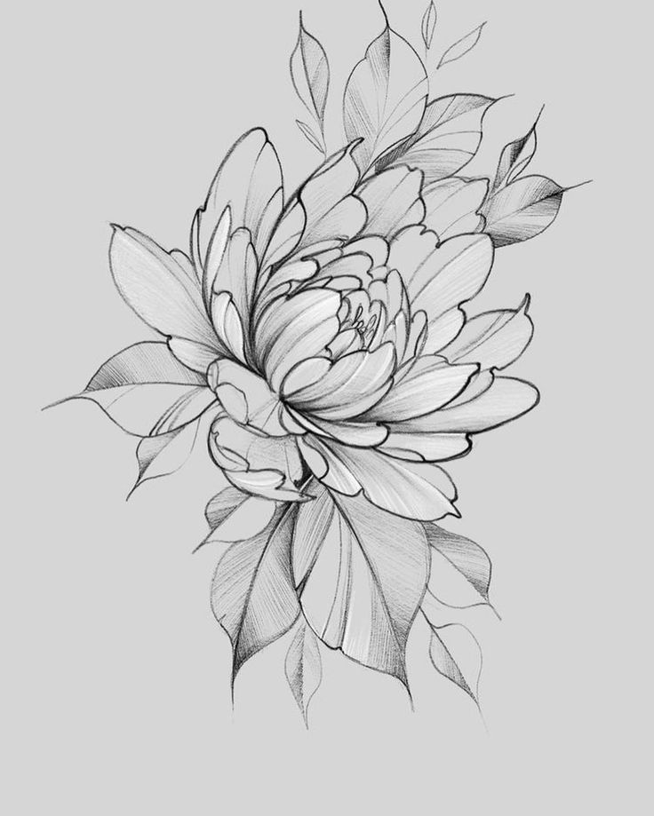 Пион – яркий красочный цветок, который сильно выделяется среди цветов на тату. Он отлично смотрится как самостоятельно изображение и дополнение на большом эскизе.