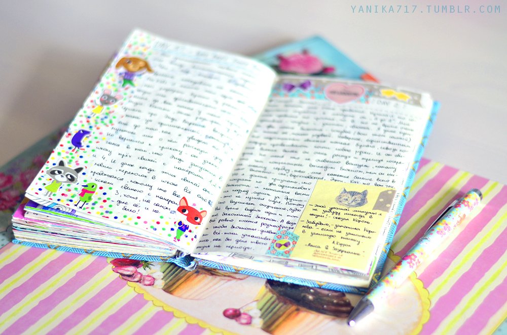 Тетрадь или блокнот в розовых тонах, наполненные яркими красками, наклейками и вырезками из модных журналов, с ароматными страничками и фото голливудских звёзд – такой может быть заветная книга для девочек. Здесь царство девичьих грёз и мечтаний. Тайны доверенные книге, не раскрываются даже близким людям. Её берегут как зеницу ока, не оставляя без присмотра ни на миг.