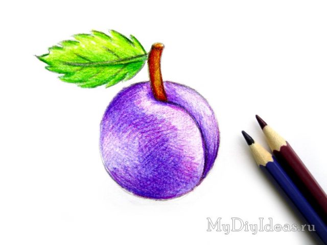 3. Закрась фрукты, как показано на рисунке, с тенями и бликами.