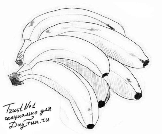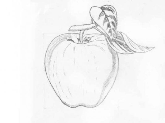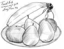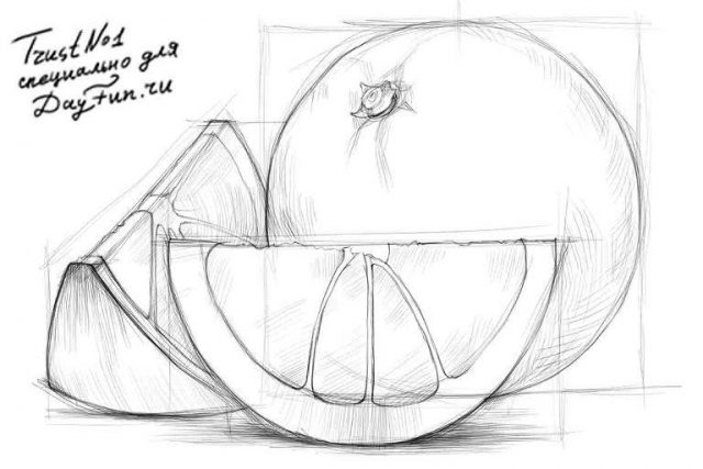 1. Прежде всего, нарисуй очертания фруктов в виде геометрических фигур. Пусть линии будут едва заметными, их потом все равно придется стереть.