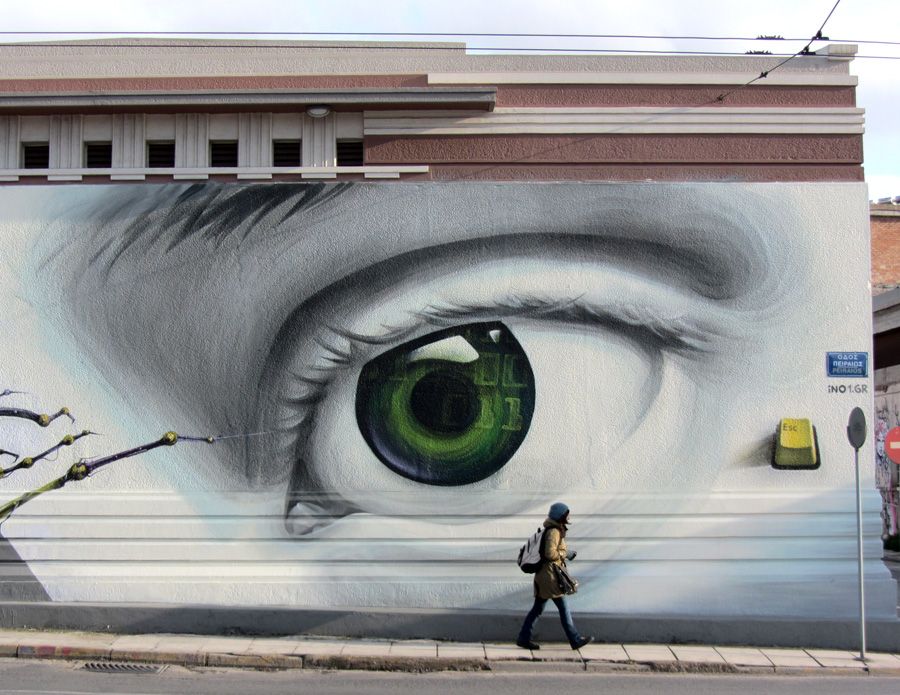 Один из таких примеров — «За закрытыми дверями»; и эпическое произведение уличного искусства, найденное на стене отеля Plaza в Лас-Вегасе. В дизайне ловко используется форма здания, чтобы придать фреске дополнительное ощущение глубины.