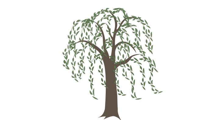 Символизация дерева ивы с простой иллюстрацией или стилем силуэта