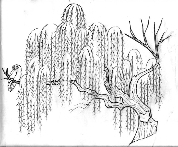 Графический дизайн. Векторный фонЭскиз старой ивы