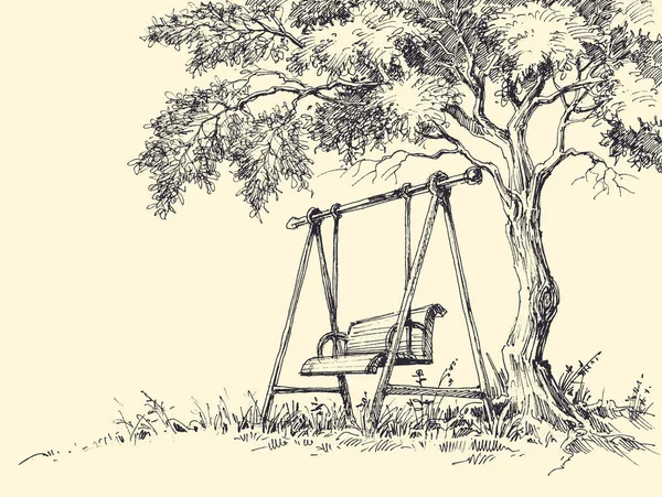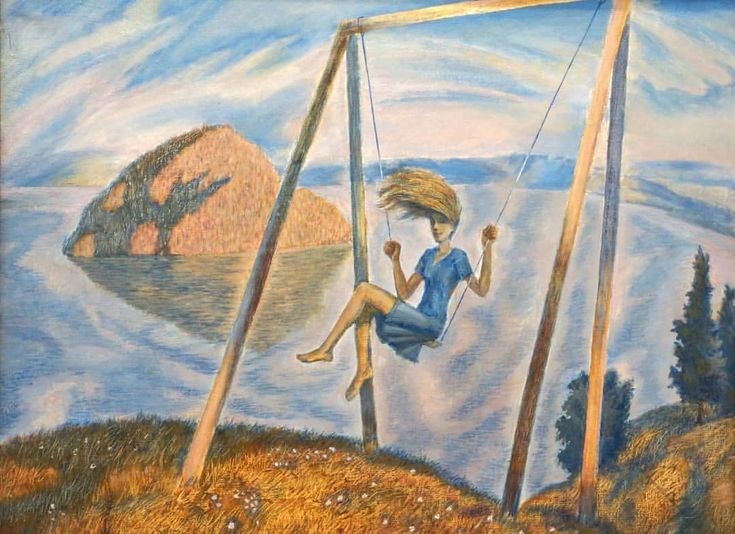 Ну, короче, решил нарисовать качели, я на бумажке показала, по типу палка- палка- перекладина, для чистоты теста ушла. Получилось вот. Дерево, на вершине гнездо, справа горка( перекладина я рисовала потом), слева на ветке дерева долбанная качель, черное слева это ворона из гнезда, красное это холодильник с мороженным, синее — мороженное рас таяло от яркого солнца. Завтра отнесем.