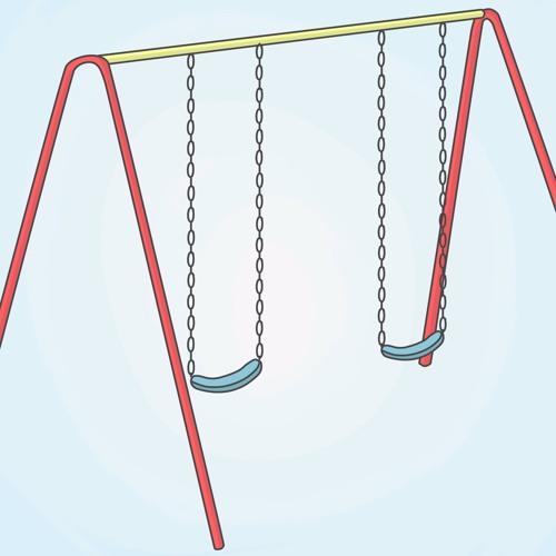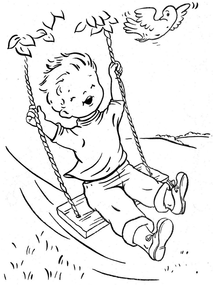 Научите его рисовать качели. А потом нарисуйте веселого монстрика с выразительной физиономией, который на качелях качается, и отнесите в сад.