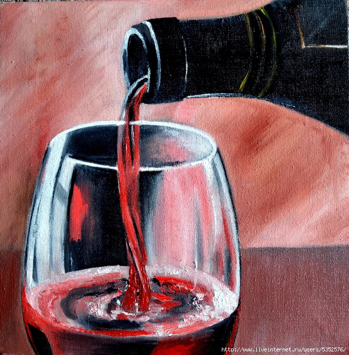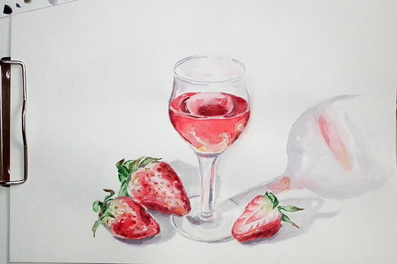Усильте ощущение формы, почувствуйте где не хватает тепла света, а где нужно углубить тень. Поставьте блики на бокале и бутылке по форме предметов. На этом, пожалуй, всё. Пишите, если у вас есть вопросы, присылайте свои работы в комментарии под записью.