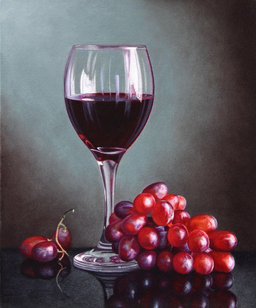 Я также решил добавить еще несколько темных оттенков на ножку бокала, это небольшое красное отражение от винограда и блики на самом винограде.Опять же, не переусердствуйте. Начните с рисования нескольких бликов, отойдите и посмотрите на это, затем решите, нужно ли вам еще несколько или он готов.