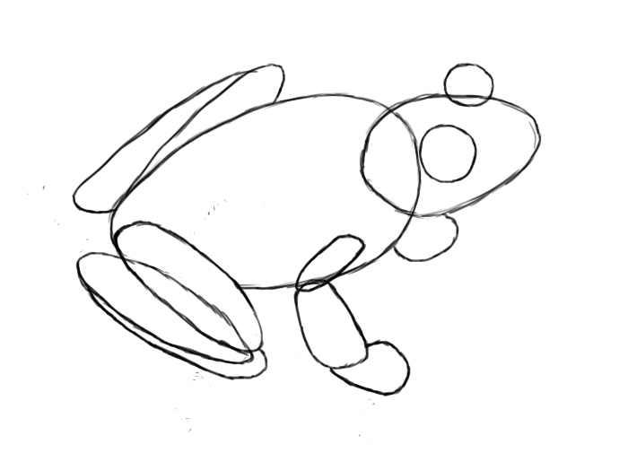 Кроме того, мы можем изобразить маленький овал рядом с задней частью нашей жабы — это будет ее задняя нога.