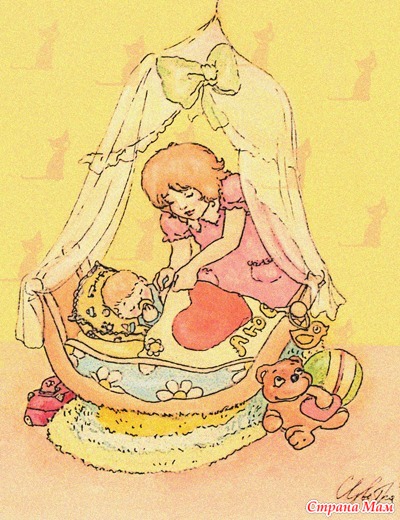 Если ребеночек плаксивый был, с ним рядом в колыбельку клали полено и говорили: «Расти, детонька, спокойный, как это полено!” А на вечерней зоре отец или дед выносил капризника на крыльцо и просил: «Заря-заяница, красная девица, возьми бессонницу-неугомонницу, а дай нам сон-упокой!” Или бабушка золы в печке на палец возьмет и на лбу малыша заметинки крестом делает, и при этом уговаривает: «Спи, внучек, не плачь, я испеку тебе калач! Спи-ка не реви, я испеку тебе три! Семечком помажу. А тебе его не покажу. Будь умничкой, засыпай и не плачь…” Ребенка до года чужим вообще не было принято показывать, а потому люльку покрывали ситцевым или холщовым пологом.