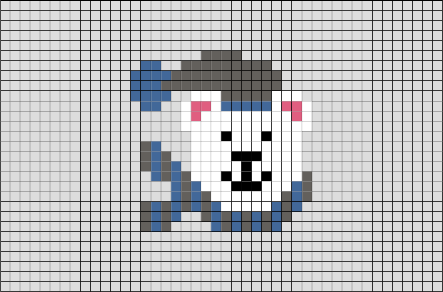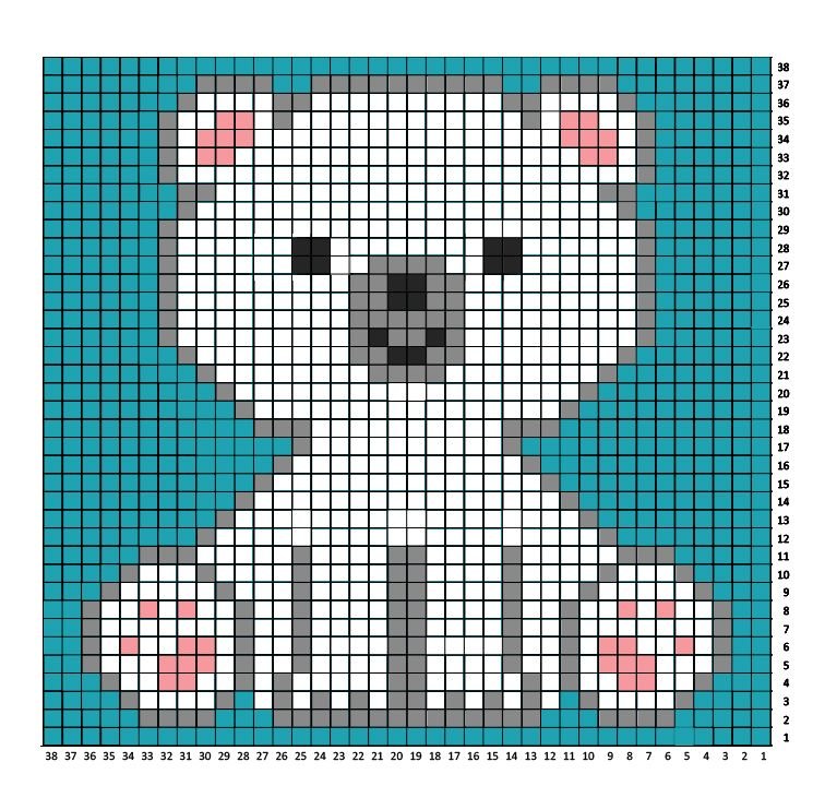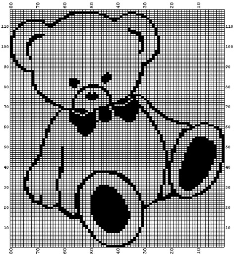 Берем черный фломастер и начинаем рисовать контур от верхнего правого угла. Направление закрашенных клеточек будет влево. Так вырисовывается голова и часть туловища.