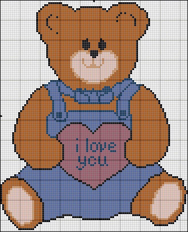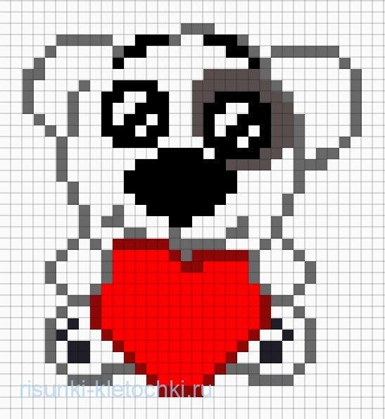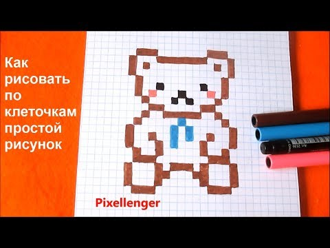 Простую, но очень красивую картинку можно получить с помощью карандашей и листика в клетку. Сейчас мы узнаем как рисуется милый мишка с сердечками: