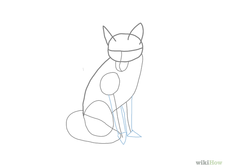 2. Продолжаем намечать форму животного в виде простых линий и форм. Рисуем еще три лапки с левого бока.