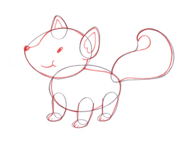 Вот контур пышного хвостика, а вот – красивая мордочка лисы. Все линии контура туловища и головы должны быть естественными.