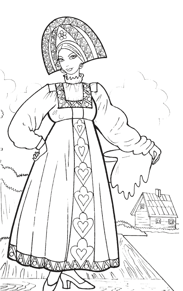 Теперь наших девочек нужно одеть в красивые сарафаны. (рисуем по схеме сарафан)