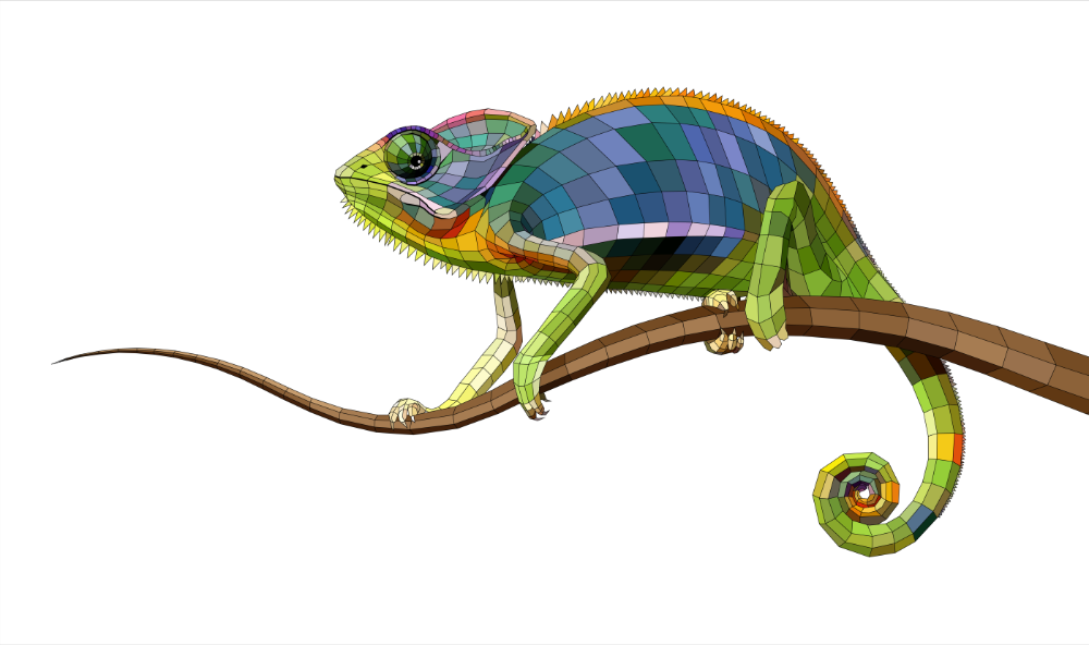 [18:14] Джулия, я использовала белый цвет между ними, чтобы осветлить участки. На изображении Хамелеона, на которое я смотрю, есть белое, например, губы, где бы они ни сгибались, именно там, где сгибаются губы, вот здесь. Обе эти области очень светлые. Поэтому я использовал белый. [19:13] Да, вы можете найти этого хамелеона с помощью быстрого поиска в Google. Думаю, это один из первых результатов.