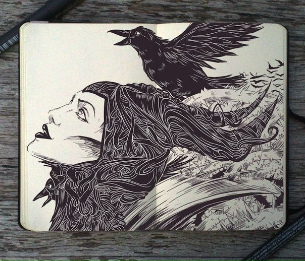 Введение: Начните с карандашного наброска. На начальных этапах не давите слишком сильно. Делайте наброски легкими плавными мазками.