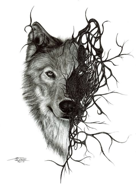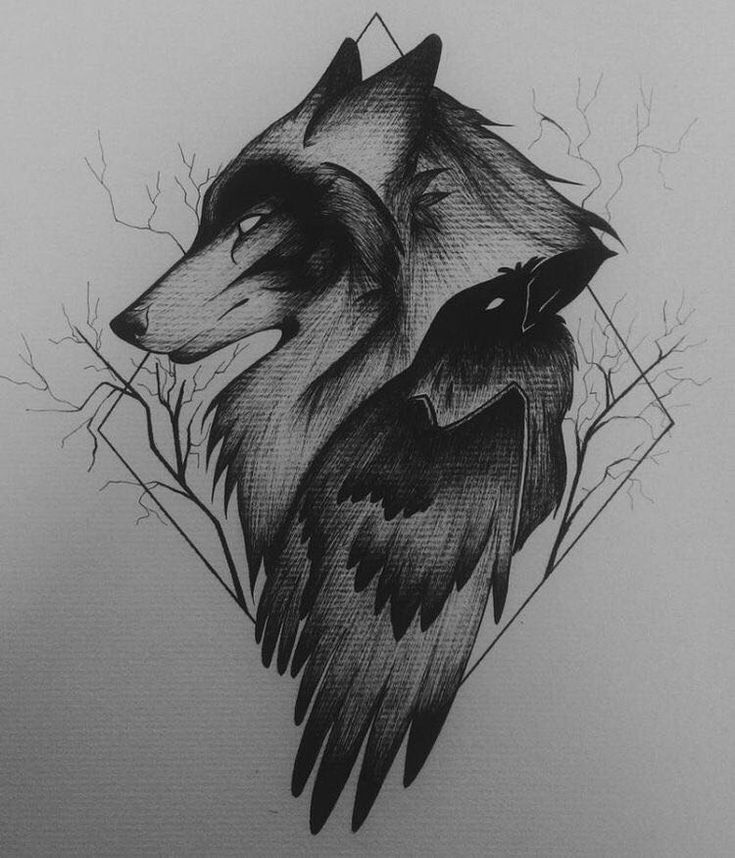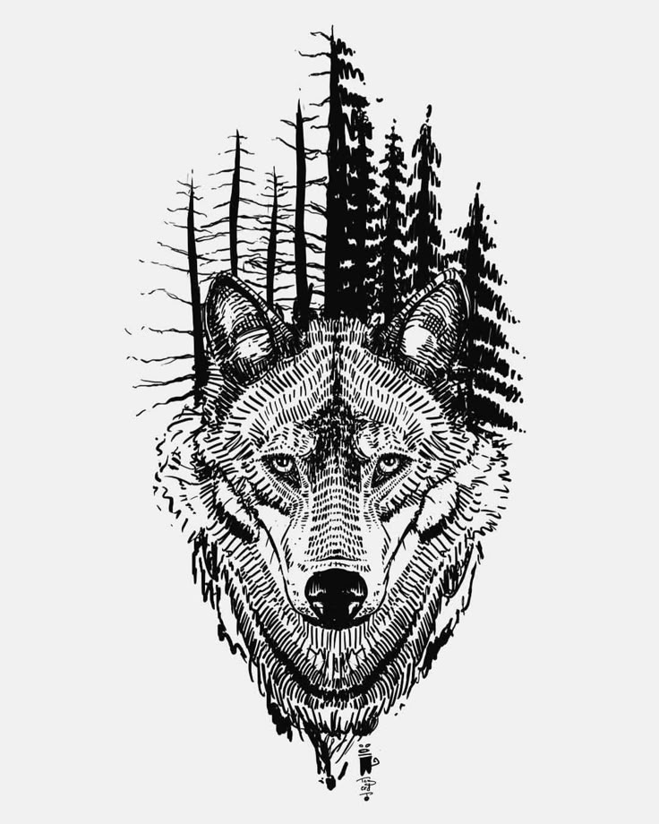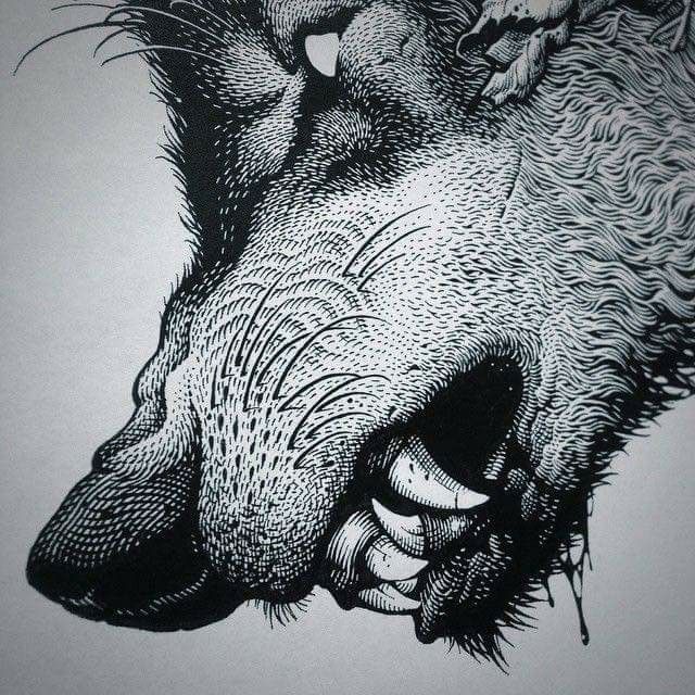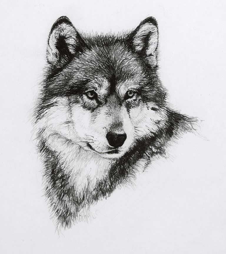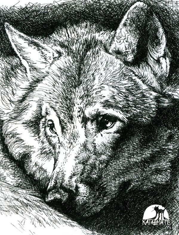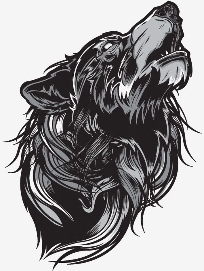 Иллюстрация волка, рисунок, гравюра, тушь, штриховая графика, вектор