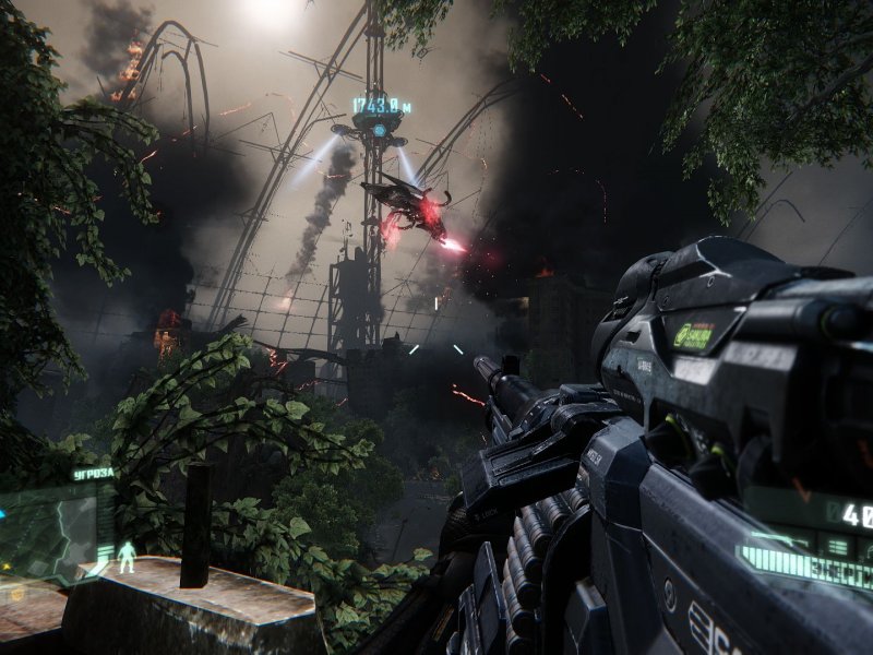 Что впечатлила, так это графика — технологически, это самая красивая игра на персональных компьютерах. Попытки поиграть в Crysis 3 на максимальных настройках, вызвали у систему приступ паралича (наличных 4Gb оперы, 6-ядерного Фенома и 1GB Radeon 6870 для этого решительно не хватало).