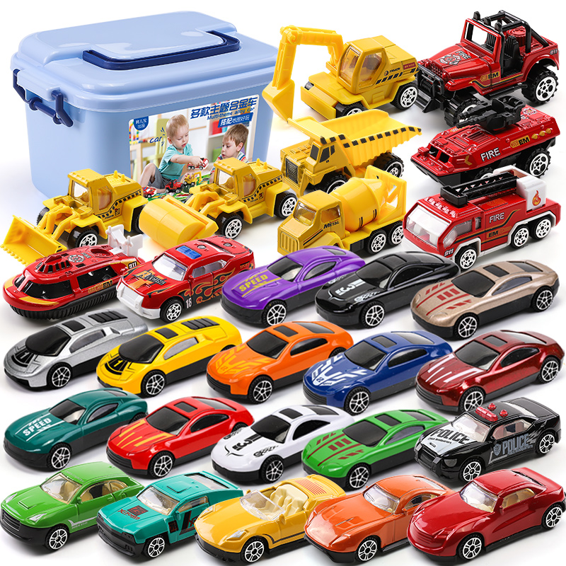 fröhlicher junge, der mit spielzeugautos spielt — мальчик с игрушечной машинкой стоковые фото и фотографииFröhlicher Junge, der mit Spielzeugautos spielt