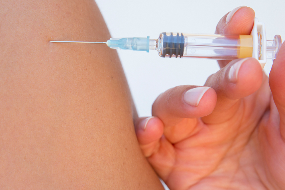 Кожа в этом месте достаточно плотная, и чтобы попасть в подкожно-жировую ткань, иглу нужно вводить с нажимом и погружать примерно наполовину от своей длины.