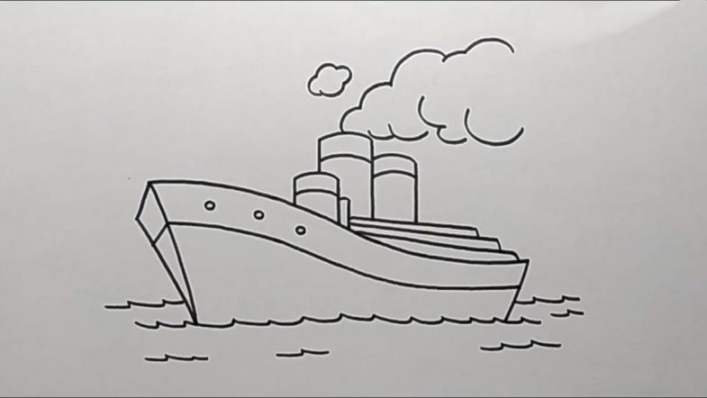 Π’Π΅ΠΏΠ΅ΡΡ ΠΏΠΎΠΏΡΠΎΠ±ΡΠ΅ΠΌ ΡΠΈΡΠΎΠ²Π°ΡΡ ΠΊΠΎΡΠ°Π±Π»Ρ ΡΠ΅Π±Π΅Π½ΠΊΡ. Π‘Π½Π°ΡΠ°Π»Π° ΠΈΠ·ΠΎΠ±ΡΠ°ΠΆΠ°Π΅ΠΌ Π²ΠΎΠ»Π½Ρ Π² Π²ΠΈΠ΄Π΅ Π²ΠΎΠ»Π½ΠΈΡΡΡΡ Π»ΠΈΠ½ΠΈΠΉ. ΠΠ°Π΄ Π½ΠΈΠΌΠΈ ΡΠΈΡΡΠ΅ΠΌ ΠΊΠΎΡΠΏΡΡ ΠΈ ΡΠ°Π·Π΄Π΅Π»ΡΠ΅ΠΌ Π΅Π³ΠΎ Π³ΠΎΡΠΈΠ·ΠΎΠ½ΡΠ°Π»ΡΠ½ΠΎΠΉ Π»ΠΈΠ½ΠΈΠ΅ΠΉ.