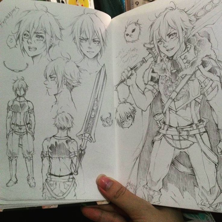 На этом же этапе заскетчь героя по полной! Эмоции, движения, даже поза лежа или сидя — в манге все имеет значение. В скетчах можно не отвлекаться на лишние детали, главное, чтобы твоя рука сама поняла, что нужно рисовать в любом случае, связанном с конкретным героем.