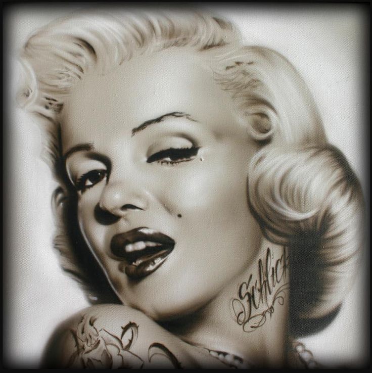 Мэрилин Монро — безошибочный идол американской поп-культуры, а ее портрет — культовый образ. Часто используется трафаретное изображение ее лица, выполненное в черно-белом цвете. Трафарет — более мрачная отсылка к красочному диптиху в стиле поп-арт Энди Уорхола, который он создал после ее широко оплакиваемого самоубийства. Хотя есть два или три изображения, которые будут использовать большинство людей, многие немного изменят их, чтобы сделать их немного более уникальными.