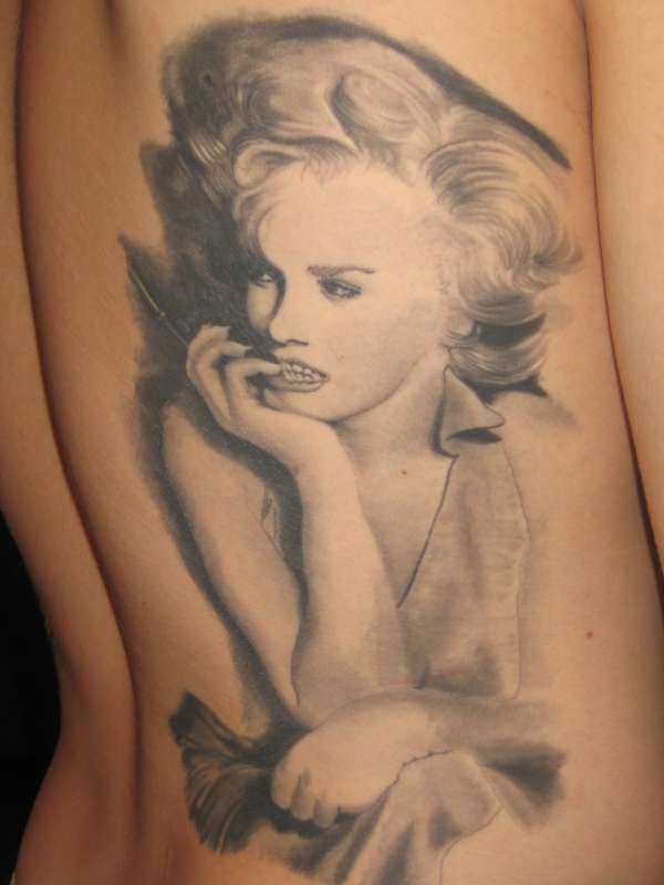 - Тату ч/б Мэрилин на боку