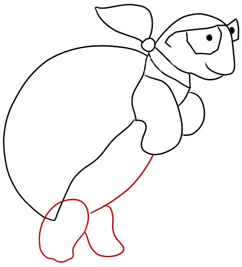 Изобразите маленький хвост. Черепашка несет целый багаж знаний, который находится у нее в портфеле. Обрисуйте его контур в виде кривого четырехугольника.
