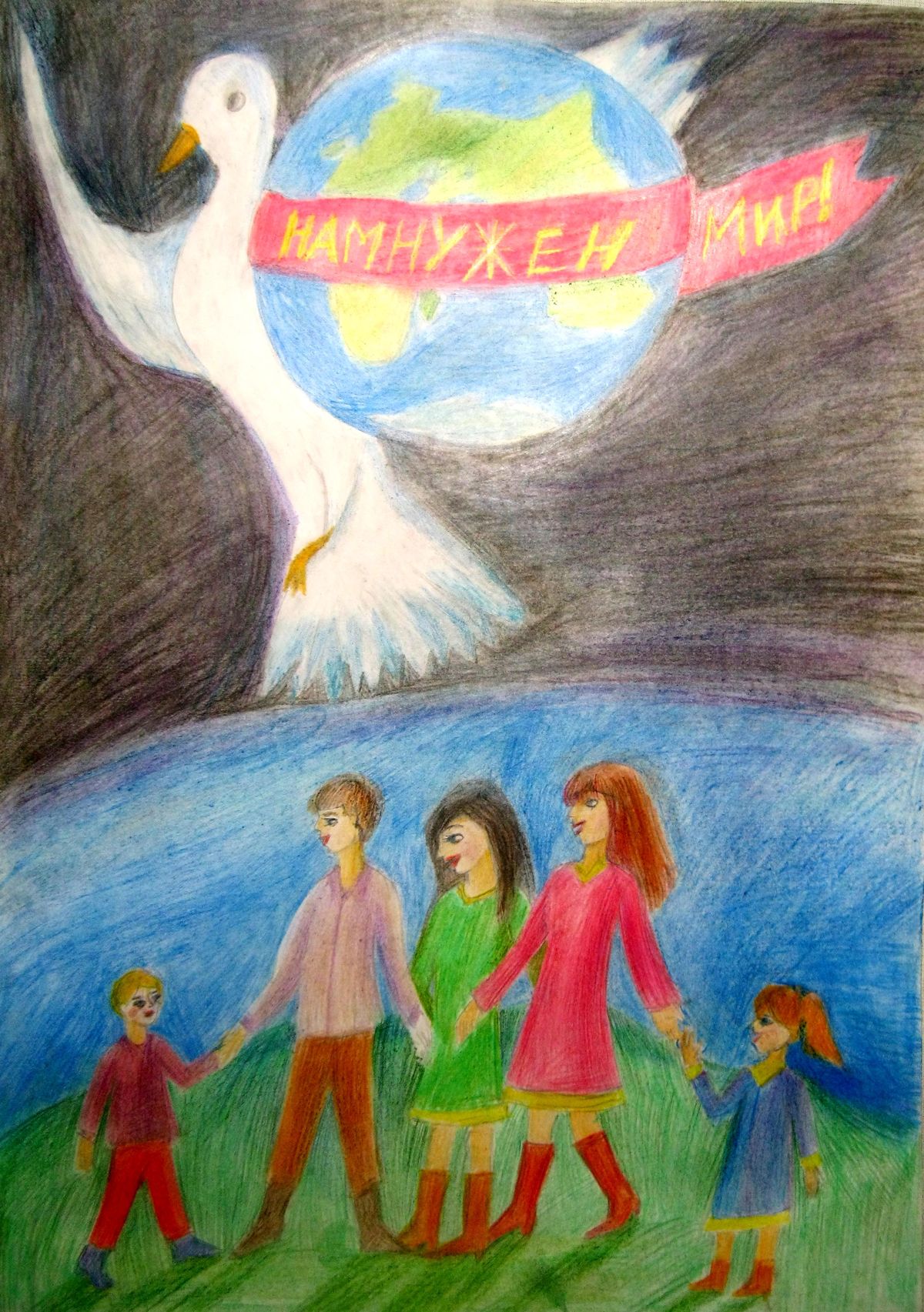 Мы за Мир! Пусть ходят голуби по крышам, Пусть тают в небе журавли… Пусть будет Мир ! Он так нам нужен! Мир нужен людям всей земли! Пусть будут реки, города и села, Пусть лес растёт , возводятся мосты… Пусть дети всей планеты ходят в школы, Пускай цветут во всех дворах цветы!