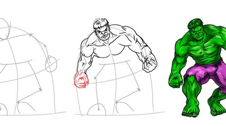 Вот идея, как нарисовать сторону лица Халка, выделив челюсть и часть головы. Не волнуйтесь, если вы перекрасите или выделите участок, который должен быть еще темным, вы всегда можете нанести еще один слой зеленого тона на этот участок и начать все сначала.