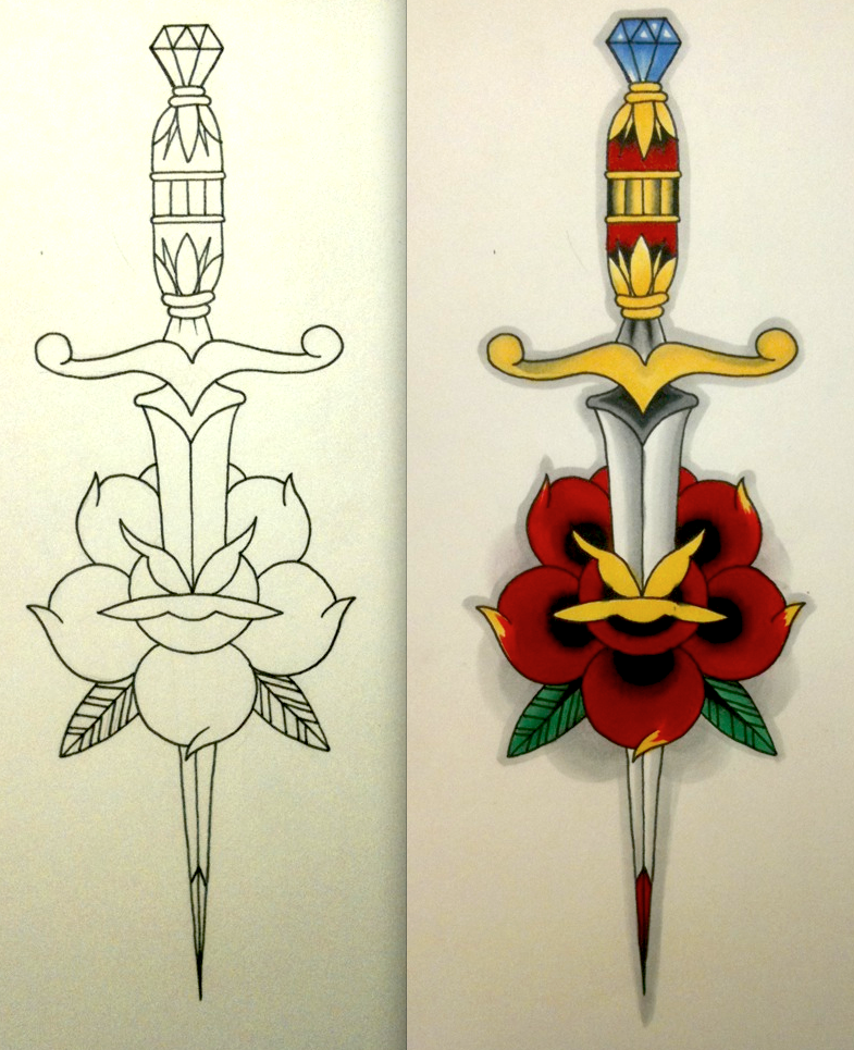 ΠΈΠ»Π»ΡΡΡΡΠ°ΡΠΈΠΈ, ΡΠ΄Π΅Π»Π°Π½Π½ΡΠ΅ ΠΈΠ· ΡΠΎΠ·Ρ ΠΈ ΡΠΎΠ·Ρ Π² ΡΡΠΈΠ»Π΅ ΡΠ°ΡΡΠΈΡΠΎΠ²ΠΊΠΈ.ΠΠ»Π»ΡΡΡΡΠ°ΡΠΈΡ ΠΎΡ Dolch mit Rose im Tattoo-Stil. ΠΠ΅ΠΊΡΠΎΡ-ΠΈΠ»Π»ΡΡΡΡΠ°ΡΠΈΡ