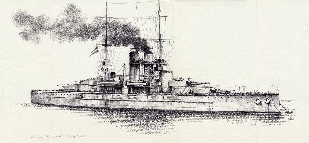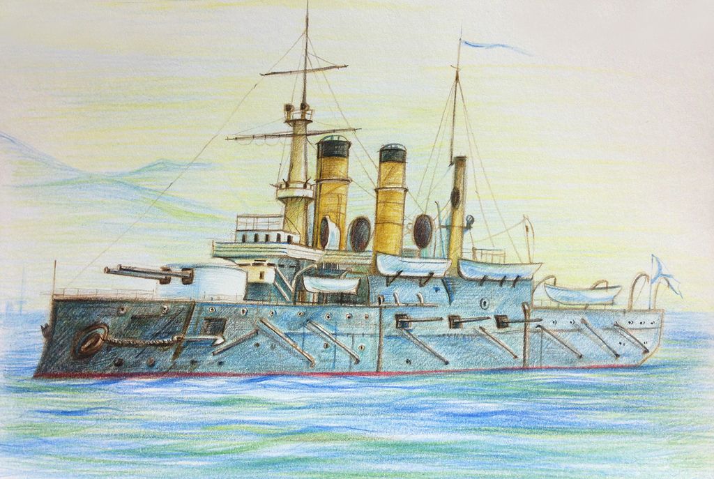Второй вариант рисунка военного корабля — линкор «Севастополь»