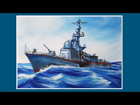 Как нарисовать военный корабль красками для ребенка поэтапно?