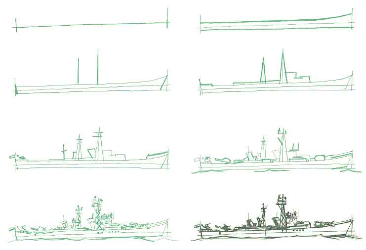 Рисуем военный корабль карандашом