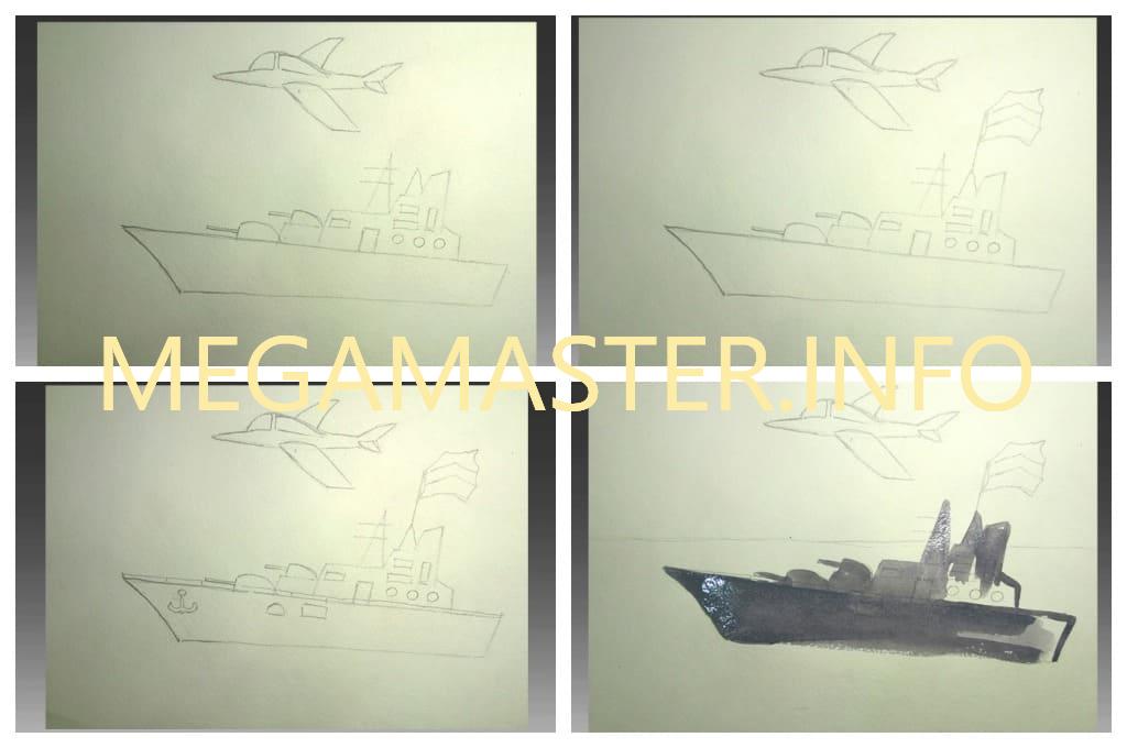 Как нарисовать военный корабль карандашом для ребенка поэтапно?
