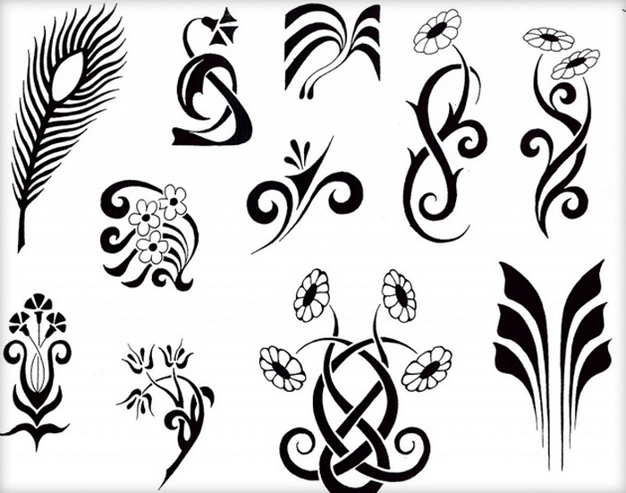 - Декоративные абстрактные узоры очень востребованы среди девушек в последние годы. Для рисунка выбираются утонченные и витиеватые линии, в сочетании с элементами геометрического и растительного орнамента, смотрятся такие татуировки очень эффектно и оригинально.
