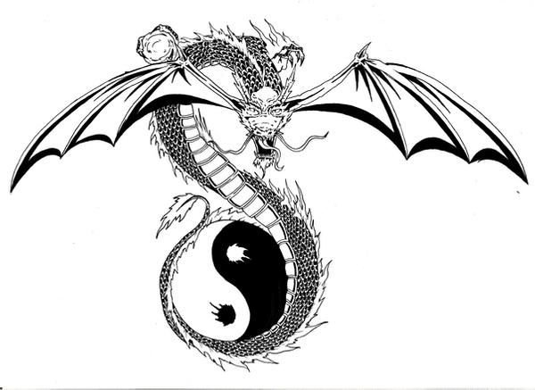 - иллюстрация дракона, тату-наклейка на стену, рисунок Инь и Ян, файл татуировки Инь-Ян PNG размер: 681x805px Размер файла: 94.32 КБ
