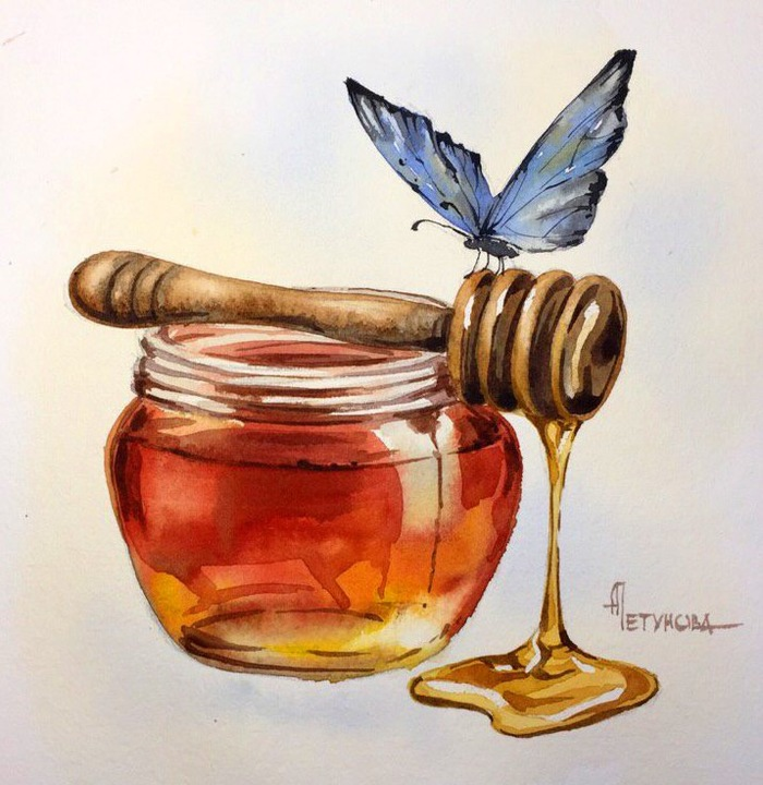 баночка меда, медовый рисунок Акварельная живопись Иллюстрация, мед, Пчела меда, нарисованная pngтеги